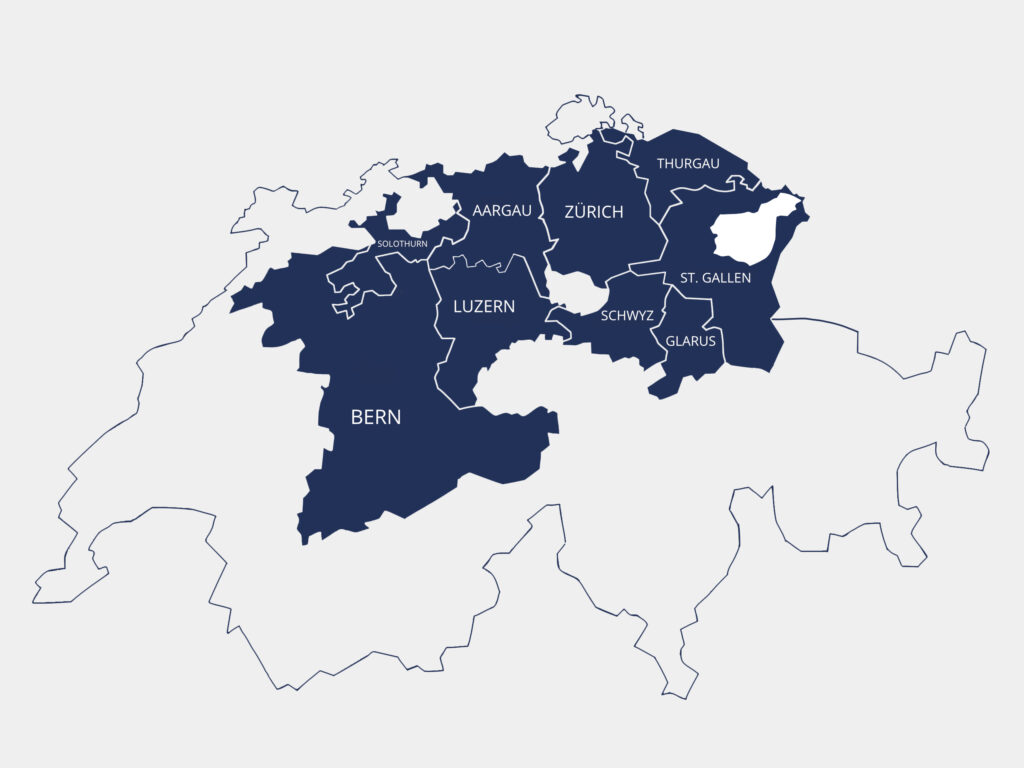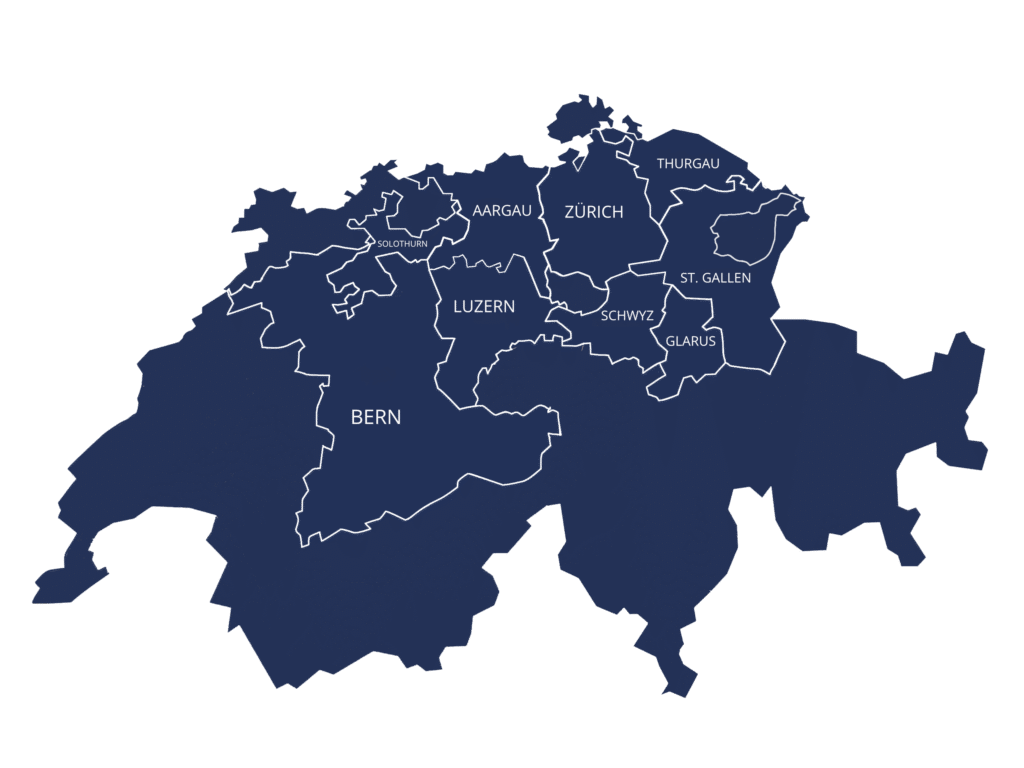 Mittlerweile sind wir in den Kantonen Zürich, Schwyz, Aargau, Luzern, Glarus, St. Gallen, Bern, Solothurn und Thurgau aktiv.